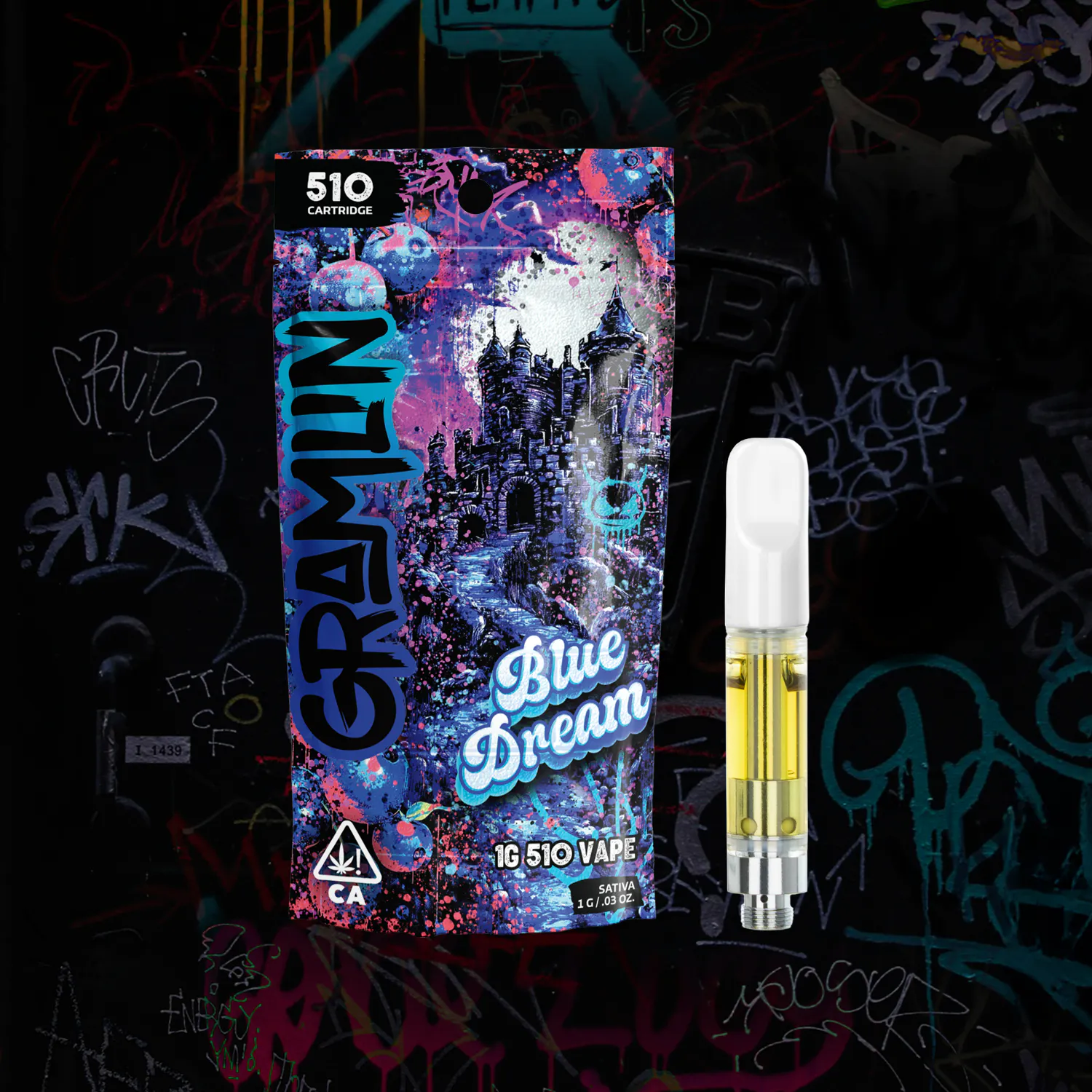 This full gram 510 Vape Cartridge is ready to smoke out of the bag. Like a tart blueberry popsicle, this Blue Dream sativa vape's quality ceramic coil means big flavor and bigger clouds. Battery not included. Rip to unlock Gramlin Mode. gramlinmode.com