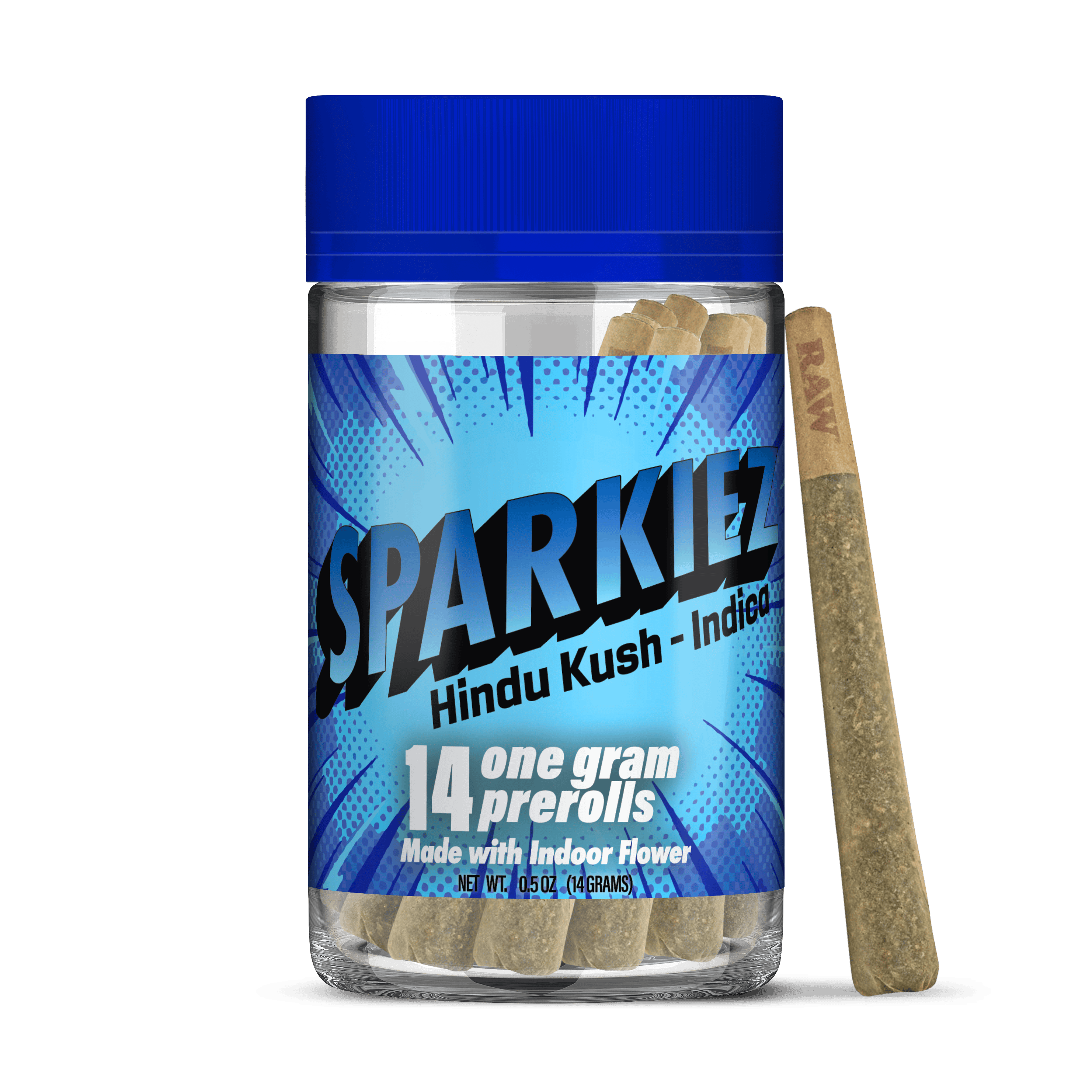 Sparkiez Hindu Kush is a one-of-a-kind strain to help ease your mind and body from a long day and leave you feeling a deep sense of calm. Earthy, woody, and slightly sweet, this pure indica strain will have you feeling blissfully relaxed, restful and at peace. We take 14 grams (½ Ounce) of beautiful indoor flower, no trim, no shake, and roll it into 14 ready to spark pre-rolls. Ready. Set. It's Sparkiez time! Each pre-roll contains 1G of flower.