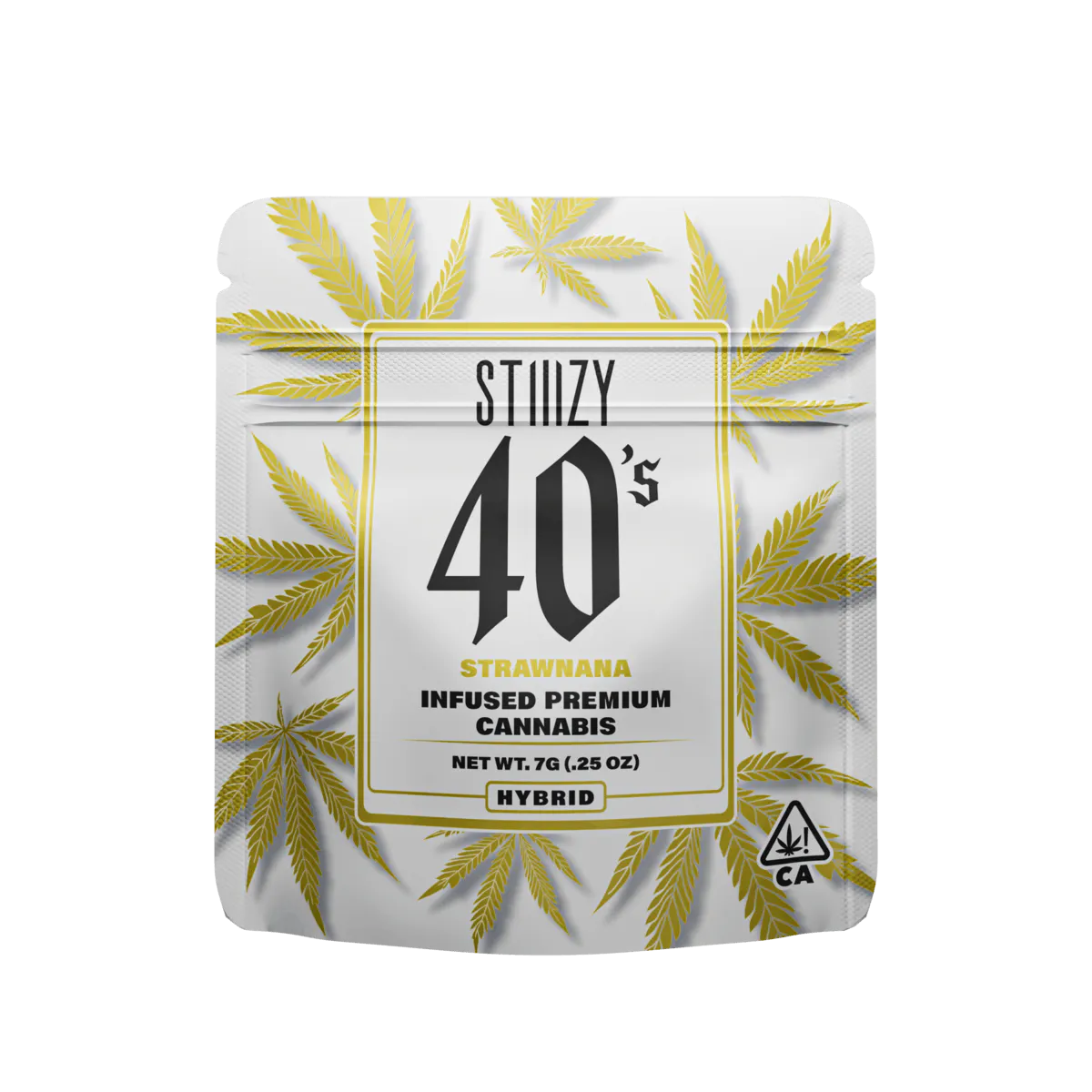 Elevate your flower experience with the new STIIIZY 40’s infused flower. We have expanded our 40’s line by incorporating our premium cannabis flower infused with our finest THC-A Diamonds for an extra punch. We call them 40's because our infused flower strains are potent, testing at 40% total cannabinoids content. Now you can roll your own 40’s with STIIIZY infused flower, the possibilities are endless with unmatched potency.