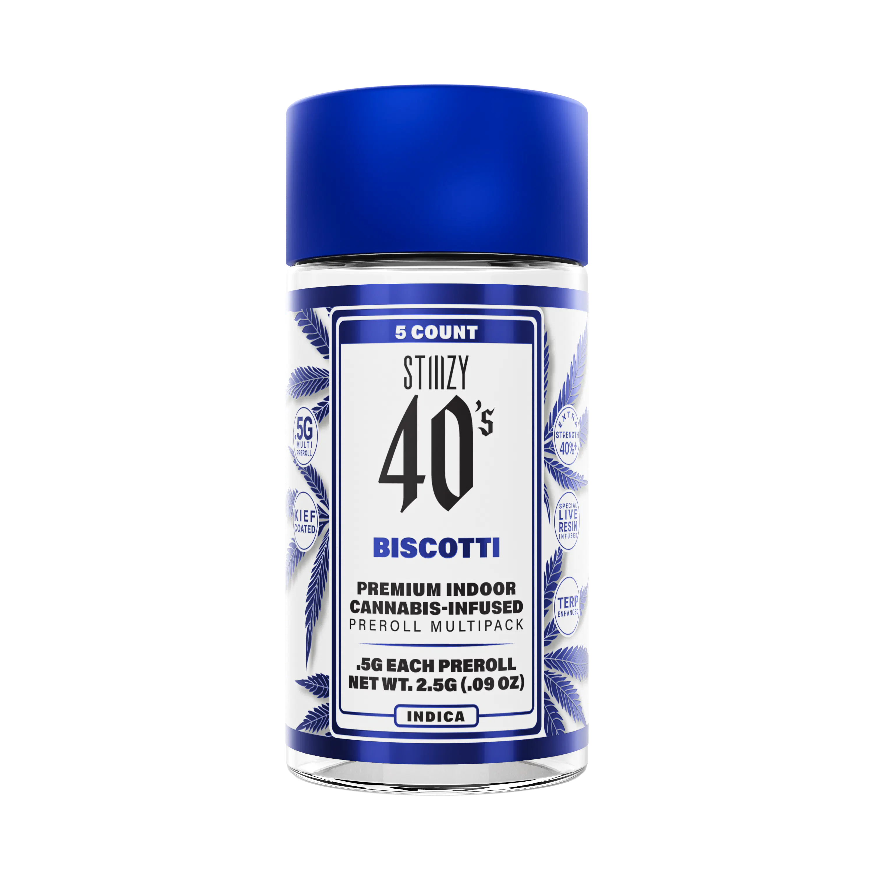 Elevate your pre-roll game. Stiiizy 40s pre-rolls are setting the standard with high potency, cannabis infused joints coated evenly with kief. Using our proprietary live resin infusion methods, we’ve designed every pre-roll to offer 40%+ THC potency with a unique flavor profile. With a smooth inhale and tasteful exhale, each and every Stiiizy 40 is packed with indoor grown flower, specifically made to ensure a potent and long-lasting high. Spark up the 40s.