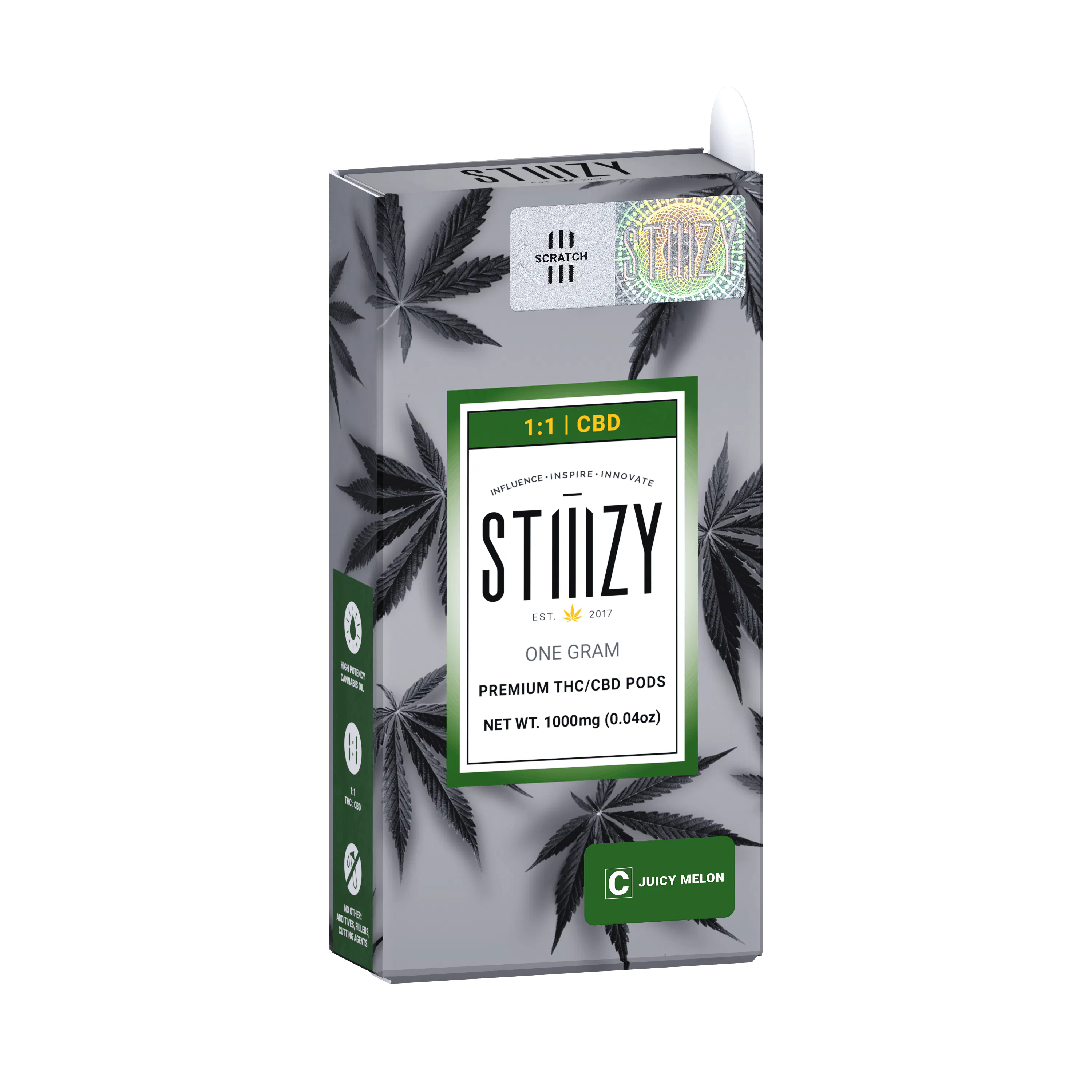 DESCRIPTION: A 1:1 pod that offers an equal ratio of CBD and THC infused with fresh Juicy Melon flavor.